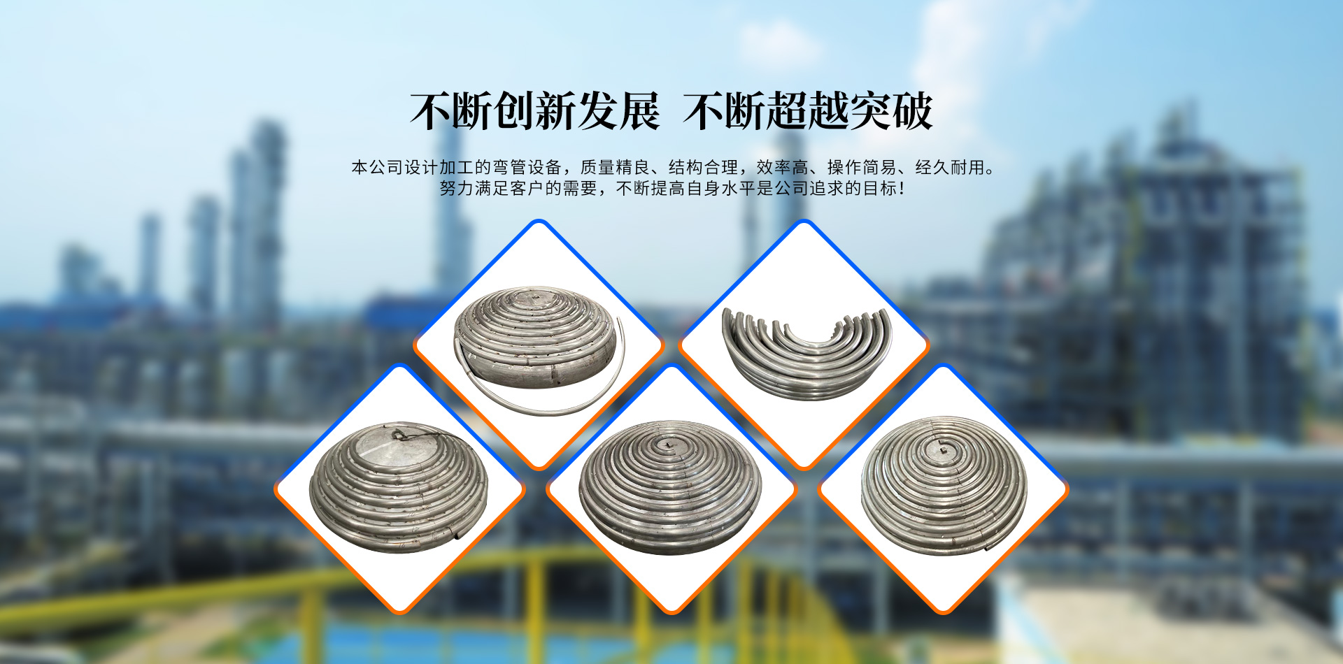 無(wú)錫百信達(dá)彎管制造有限公司位于經(jīng)濟(jì)發(fā)達(dá)、風(fēng)景秀麗的太湖之濱。本公司擁有完整、科學(xué)的質(zhì)量管理體系,公司的誠(chéng)信、實(shí)力和產(chǎn)品質(zhì)量獲得業(yè)界的認(rèn)可。公司專注生產(chǎn)、定制加工各種規(guī)格的盤(pán)管、半圓管、內(nèi)盤(pán)管、不銹鋼盤(pán)管、封頭盤(pán)管、蚊香盤(pán)管、U型管、不銹鋼半圓管、碳鋼盤(pán)管等的企業(yè)。本公司設(shè)計(jì)加工的彎管設(shè)備,質(zhì)量精良、結(jié)構(gòu)合理,效率高、操作簡(jiǎn)易、經(jīng)久耐用。公司已經(jīng)承接了各地多個(gè)大型場(chǎng)館工程項(xiàng)目的彎管加工,屢次得到了多家大客戶的好評(píng)。努力滿足客戶的需要,不斷提高自身水平是公司追求的目標(biāo)。歡迎社會(huì)各界朋友蒞臨無(wú)錫百信達(dá)彎管制造有限公司參觀、指導(dǎo)和業(yè)務(wù)洽談!